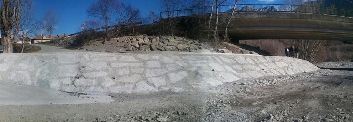 En concreto, las dos nuevas defensas colindantes a la rampa de bajada al cauce consisten en un revestimiento de piedra sobre una base de hormigón en las zonas contiguas al cauce y en una base de hormigón y un talud, en los tramos fuera de él.