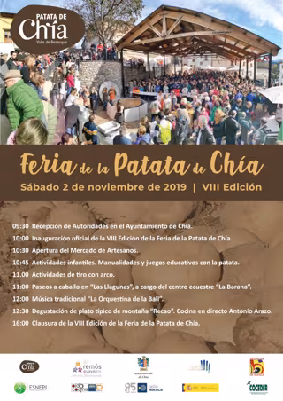 El municipio ribagorzano de Chía celebrará este sábado, día 2 de noviembre, la VII edición de la Feria de la Patata que contará con las actividades tradicionales del mercado de artesanos, talleres infantiles y el guiso de típico de la región, 'El Recao' que elabora el cocinero Antonio Arazo y que este año espera llegar a las 1.900 degustaciones.