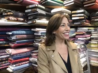 La candidata del PP a la Alcaldía de Zaragoza, Natalia Chueca, en un comercio de telas - EUROPA PRESS