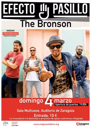 La apertura de puertas de la sala multiusos será a las 19.00 horas de este domingo, 4 de marzo. La banda aragonesa 'The Bronson' ofrecerá el primer concierto y tras su actuación será el turno del grupo canario 'Efecto Pasillo', quienes presentarán en la capital aragonesa su último disco "Barrio de las Banderas".