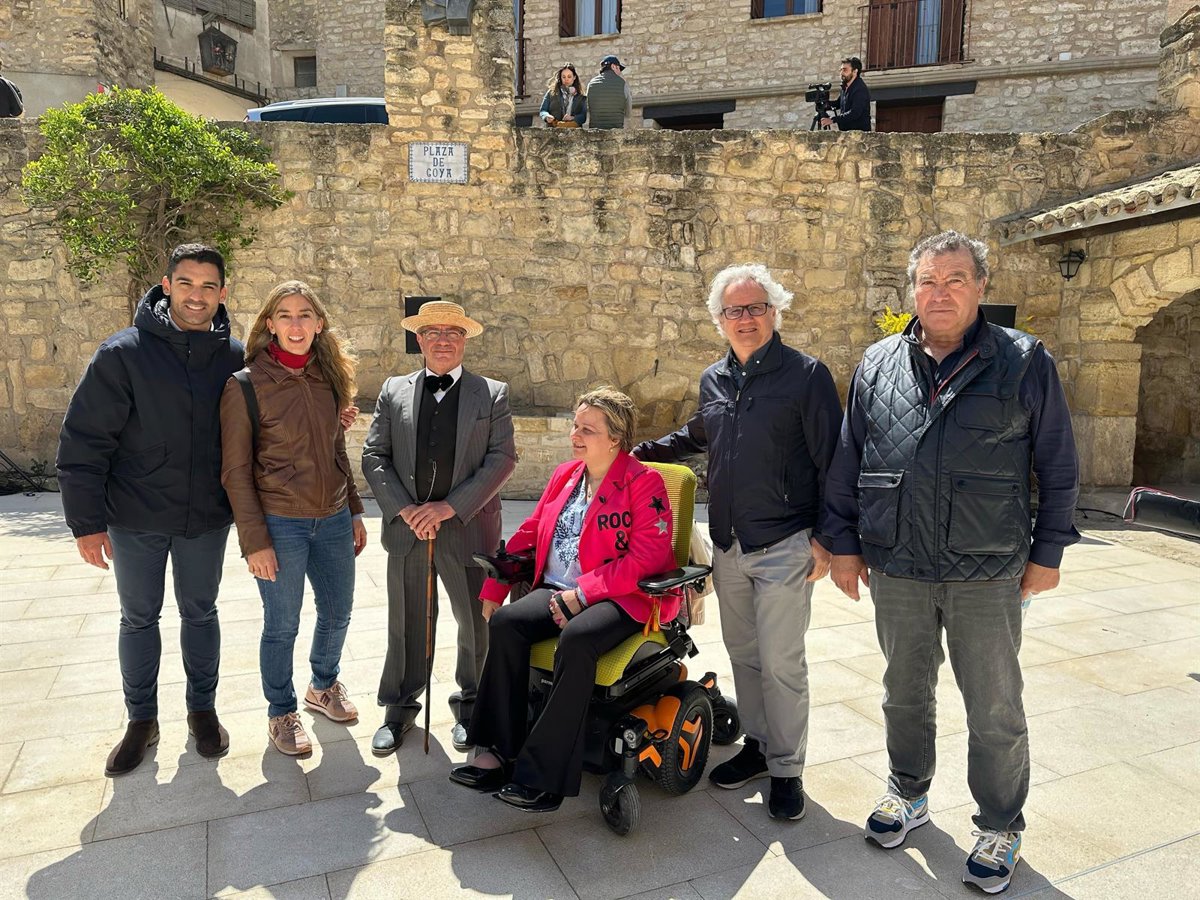 El secretario general de Ciudadanos, Carlos Pérez-Nievas, segundo por la derecha, junto al alcalde de Fuendetodos, Enrique Salueña, vestido de época entre otras personas que han participado en la romería que conmemora la llegada del pintor Zuloaga. - C'S