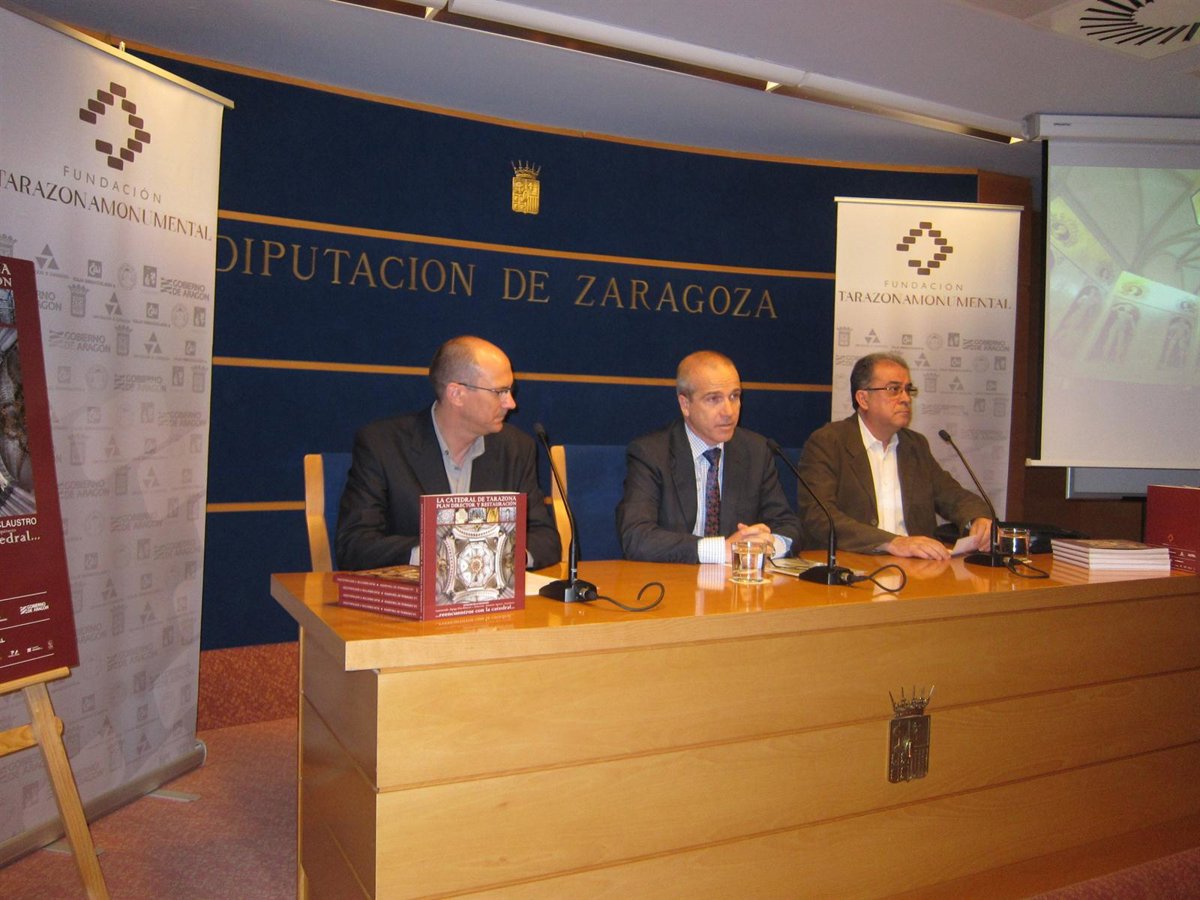 El presidente de la Fundación Tarazona Monumental, Agustín García Inda, el gerente de la fundación, Julio Zaldívar, y el arquitecto responsable del Plan Director de la seo turiasonense y comisario de la muestra, Fernando Aguerri, han presentado en rueda de prensa en la capital aragonesa esta exposición que podrá visitarse de manera gratuita en unas jornadas de puertas abiertas entre el 12 y el 20 de mayo, así como a partir del día 22 de este mismo mes como complemento a la visita de la Catedral, con un precio de 4 euros.