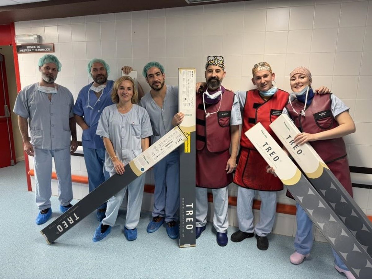En concreto, se han realizado dos cirugías en pacientes portadores de un aneurisma de aorta yuxtarrenal --dilatación anormal de la aorta abdominal que se encuentra junto a las arterias renales--, a los que se ha intervenido con la nueva prótesis Treo Fenestrada.