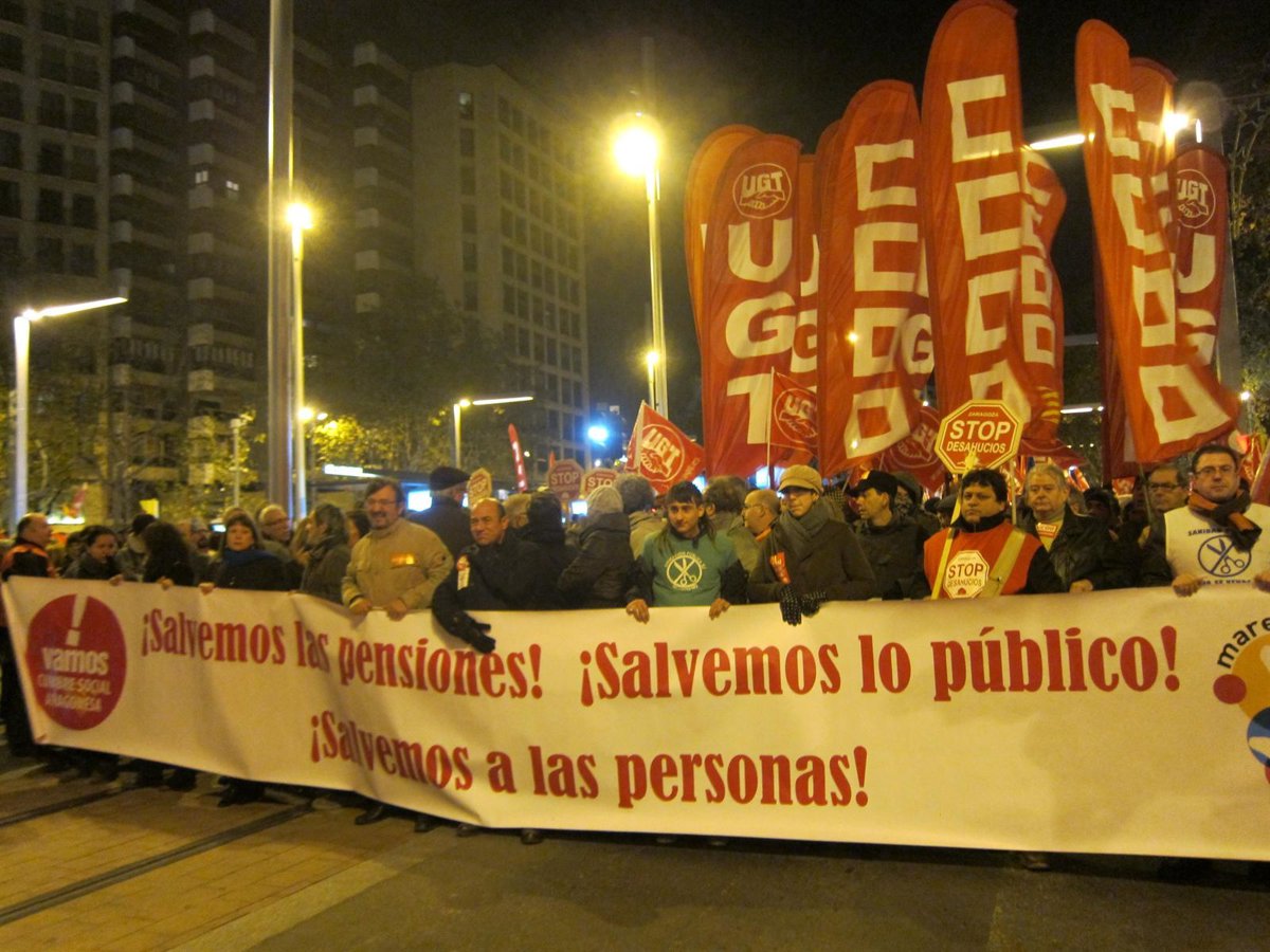 Esta protesta, bajo el lema 'Emplea tu fuerza. Vamos a cambiar las cosas. Defendamos lo público. Defendamos a las personas. Defendamos las pensiones', se ha realizado en Zaragoza, Tarazona, Teruel, Alcañiz, Monzón y Huesca, así como en otras ciudades españolas y europeas, ya que está convocada por la Conferencia Europea de Sindicatos.