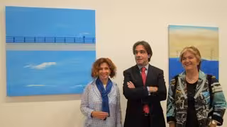 Además, algunas obras recogen "un paisaje mas íntimo porque están hablando de otro contexto". Son las que forman parte de la serie de 'Educar en azul', el color más presente en esta exposición, con el que "llevo muchos años trabajando", que "he intentado quitarlo, pero que al final siempre vuelve", ha enfatizado Martínez Carnicer.