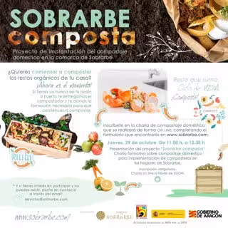 La Comarca de Sobrarbe entregará de forma gratuita a los vecinos interesados un compostador, un termómetro y un aireador y estos deberán asistir a una formación online que tendrá lugar el próximo jueves, 27 de octubre, de 11.00 a 12.30 horas. Durante esta formación se explicará de forma detallada en que consiste el proyecto y el proceso de compostar. Esta charla será realizada por la empresa Aviva Rural, experta en educación ambiental.