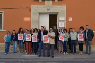 Varios trabajadores de la entidad supramunicipal se han apostado junto a la entrada de la sede comarcal con carteles con el lema 'Yo paro por mi puebo' y entre ellos el presidente de la Comarca de Somontano, Daniel Gracia, y el portavoz de Cambiar Barbastro y responsable del área de Medio Ambiente, Ramón Campo.