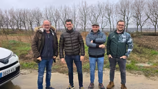 Pérez ha visitado los terrenos acompañado por el responsable de la empresa Oliva Medioambiente y Servicios, Abel Oliva, encargado de ejecutar las tareas de reforestación; el director de obra, Santiago Vieites; y el asesor de la Comarca en materia de medioambiente, Rafael Bernal, de la empresa Aragonea.