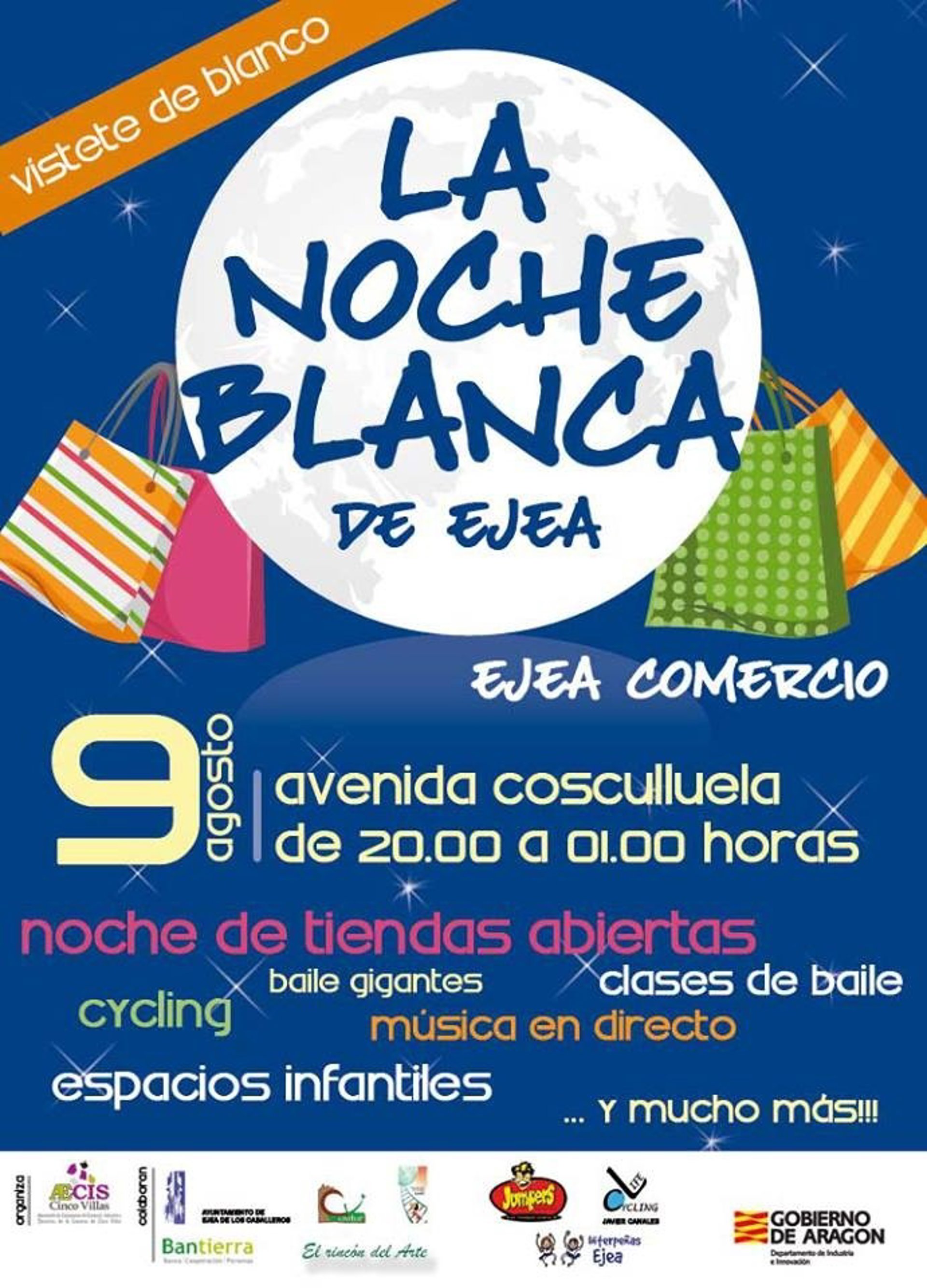 Ejea de los Caballeros celebra su segunda noche de tiendas abiertas el 9 de agosto, organizada por la Asociación de Comercio de la localidad zaragozana.