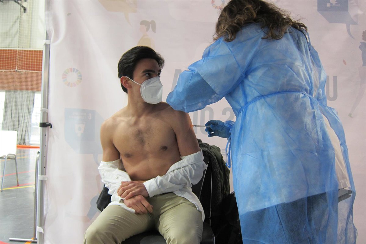Uno de los alumnos que ha sido vacunado este lunes contra la COVID-19 en la Universidad de Zaragoza. - EUROPA PRESS