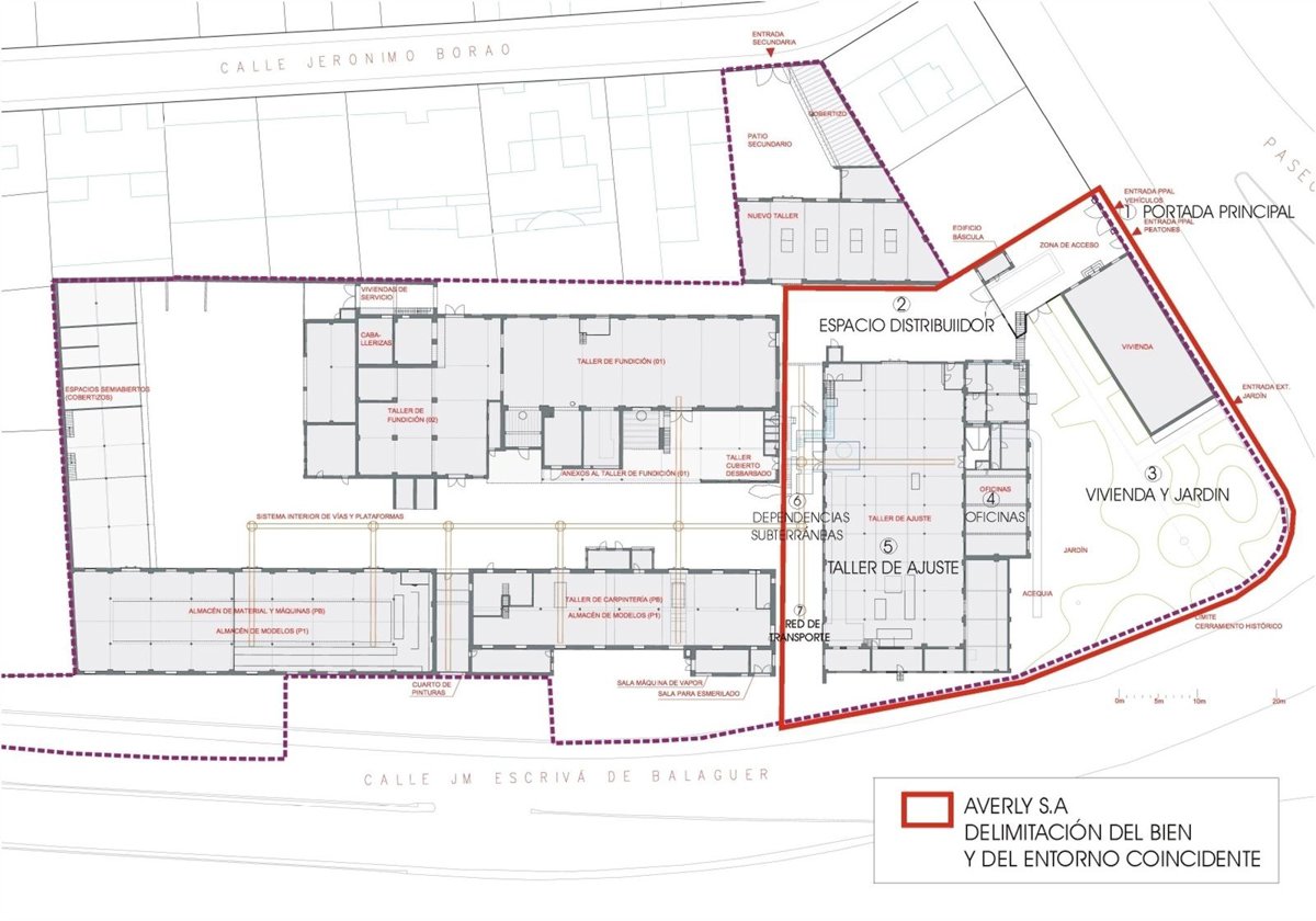 Así, y una vez valoradas las distintas partes que se conservan en la Factoría Averly, se considera Bien Catalogado la portada principal de entrada al conjunto de instalaciones con todos sus elementos estructurales y decorativos, así como el espacio distribuidor de acceso.