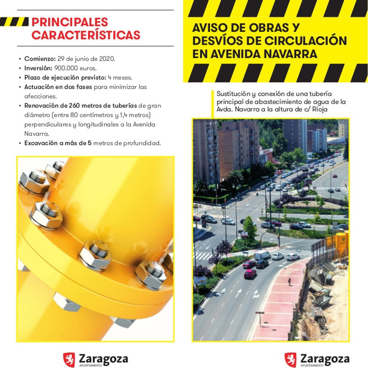 Además, el Ayuntamiento de Zaragoza ha ultimado un plan especial de tráfico, ya que la circulación por la avenida Navarra se verá afectada durante toda la obra. En una primera fase, a partir de este lunes, 29 de junio, será necesario desviar la circulación en esta vía en sentido entrada a la ciudad. Se recomienda evitar circular por la zona con vehículo privado y utilizar, como vías alternativas, la avenida Ciudad de Soria o vía Hispanidad.