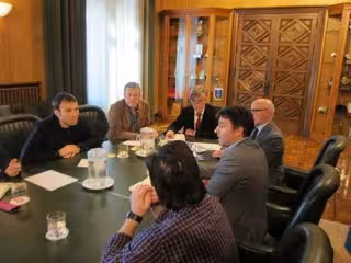 El gerente de esta empresa, Miguel Pérez, junto a miembros del comité de empresa, se han reunido con el alcalde de Zaragoza, Pedro Santisteve; el consejero municipal de Economía y Cultura, Fernando Rivarés, y el consejero municipal de Urbanismo, Pablo Muñoz.