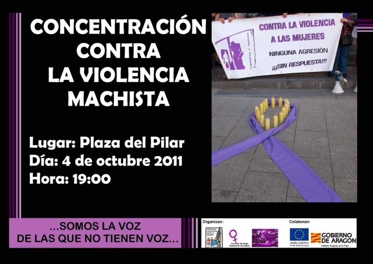 La Comisión de la Mujer de la Federación de Asociaciones de Barrios de Zaragoza (FABZ) convoca una concentración contra la violencia de género este martes, 4 de octubre, a las 19.00 horas en la Plaza del Pilar, en la zona de la Lonja.