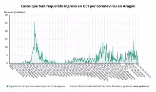 En la provincia de Zaragoza, en el C.S. Ejea-Cinco Villas hay una persona ingresada y en el Hospital Ernest Lluch de Calatayud, 36. En Huesca, en el Hospital San Jorge, 16, dos en UCI; en el Hospital de Barbastro, 17, tres en UCI; en el C.S. Fraga-Bajo Cinca, una, y otra en la Clínica Santiago. En Teruel, en el Hospital Obispo Polanco, 41, cinco en UCI; en el Hospital San José, 14, y en el de Alcañiz, 24.
