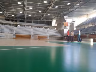 Tras el lijado, se ha barnizado la pista con dos capas para, a continuación, pintar las líneas de las pistas deportivas y logotipos, realizándose mejoras respecto al marcaje anterior. Por último, se ha aplicado una tercera capa de barniz para proteger la pintura.