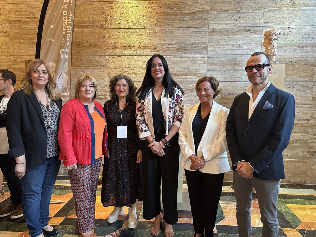 En el acto ha estado acompañada por el director general de Cultura, Pedro Olloqui, la alcaldesa de la ciudad, Lorena Orduna, y el diputado provincial de Cultura de la Diputación de Huesca, Carlos Sampériz.