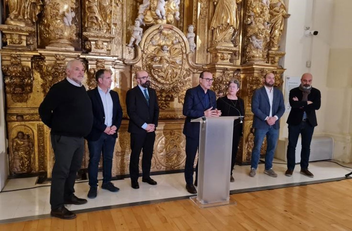 El consejero de Educación, Cultura y Deporte del Gobierno de Aragón, Felipe Faci; el delegado de la Orden de Malta en Aragón y Navarra, Joaquín Mencos; el diputado provincial de Huesca, Joaquín Monesma; el presidente de la Comarca de Monegros, Armando San Juan; y el alcalde de Villanueva de Sijena, José Jaime Castellón, han presentado la programación.