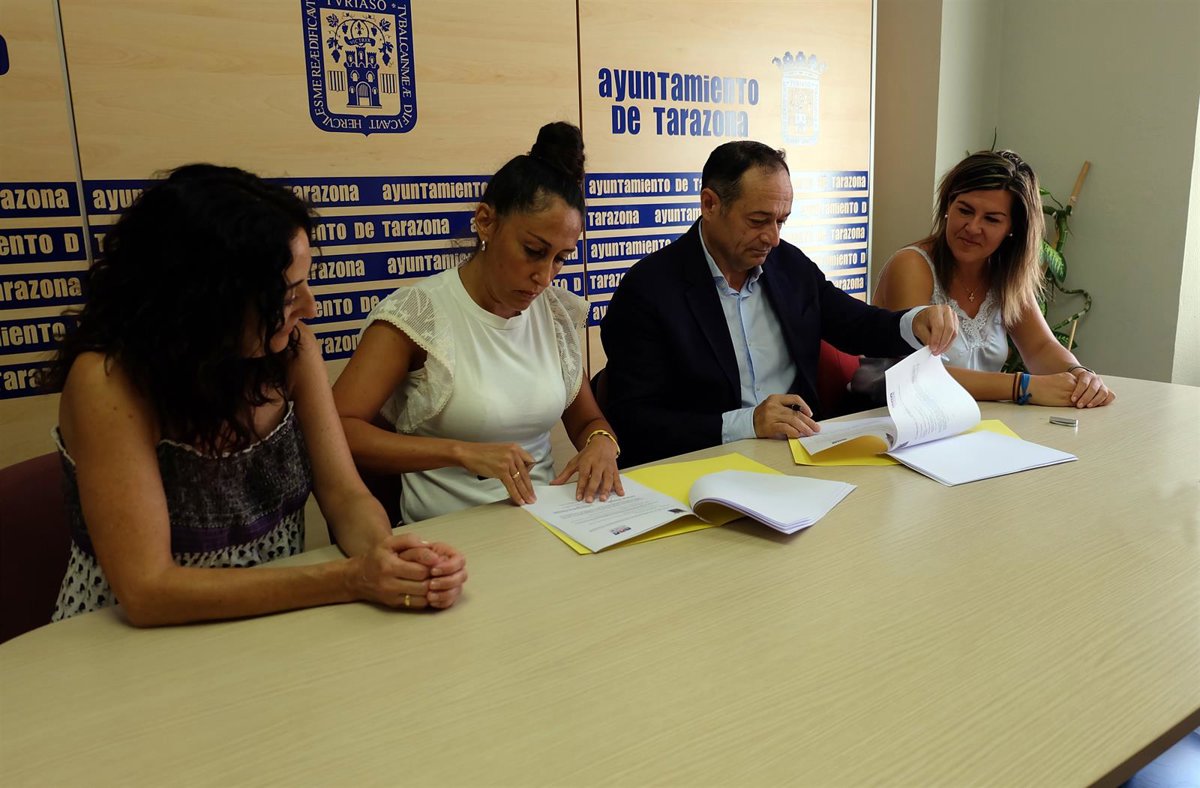 El alcalde de Tarazona, Luis José Arrechea, y la presidenta de la ACT, María Moreno, han firmado este lunes dicho convenio de colaboración que permitirá financiar actividades y diferentes herramientas, especialmente digitales, que tengan como objetivo la dinamización comercial y empresarial de la ciudad.