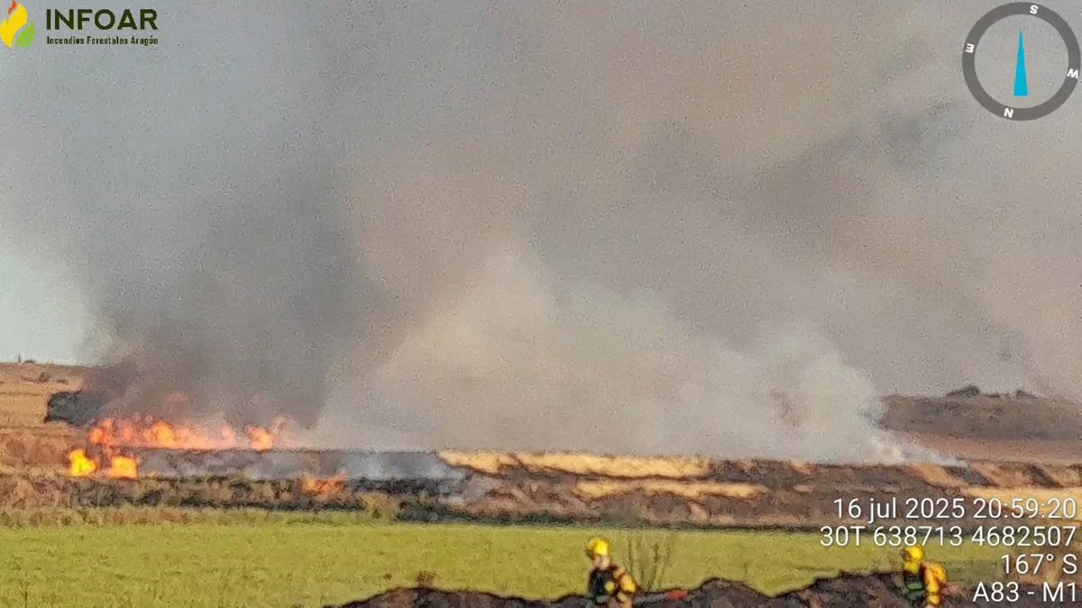 Los servicios de extinción de incendios dan por controlado un incendio que ha quemado 35 hectáreas de cereal, pastizal y matorral, con 3,5 hectáreas forestales, en el término municipal de Sádaba (Zaragoza) este miércoles, 16 de julio.