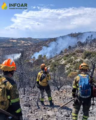 Anteriormente participaron en las tareas de extinción cuatro brigadas terrestres y cuatro autobombas y el jueves se sumaron medios del MITECO y bomberos de la Diputación de Huesca del parque de Benabarre, ayudados por agricultores de la zona.