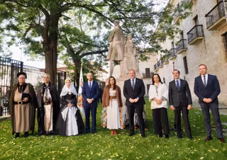 La celebración, que rememora las nupcias clandestinas de Isabel de Castilla y Fernando de Aragón el 19 de octubre de 1469, ha arrancado a las 11.00 horas con la intervención de los representantes políticos, a la que ha seguido una lectura de textos y una ofrenda floral a los pies de la estatua de los Reyes Católicos ubicada en el Palacio de Santa Cruz, donde el catedrático de Lengua Española y Literatura José María Gómez Gómez ha recitado una composición poética concebida para el aniversario.