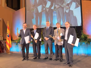 El premio ha sido recogido por el presidente de la CREA, Jesús Morte, el presidente de Cepyme-Aragón, Aurelio López de Hita, el secretario general de UGT-Aragón, Julián Lóriz, y el secretario general de CC.OO.-Aragón, Julián Buey.