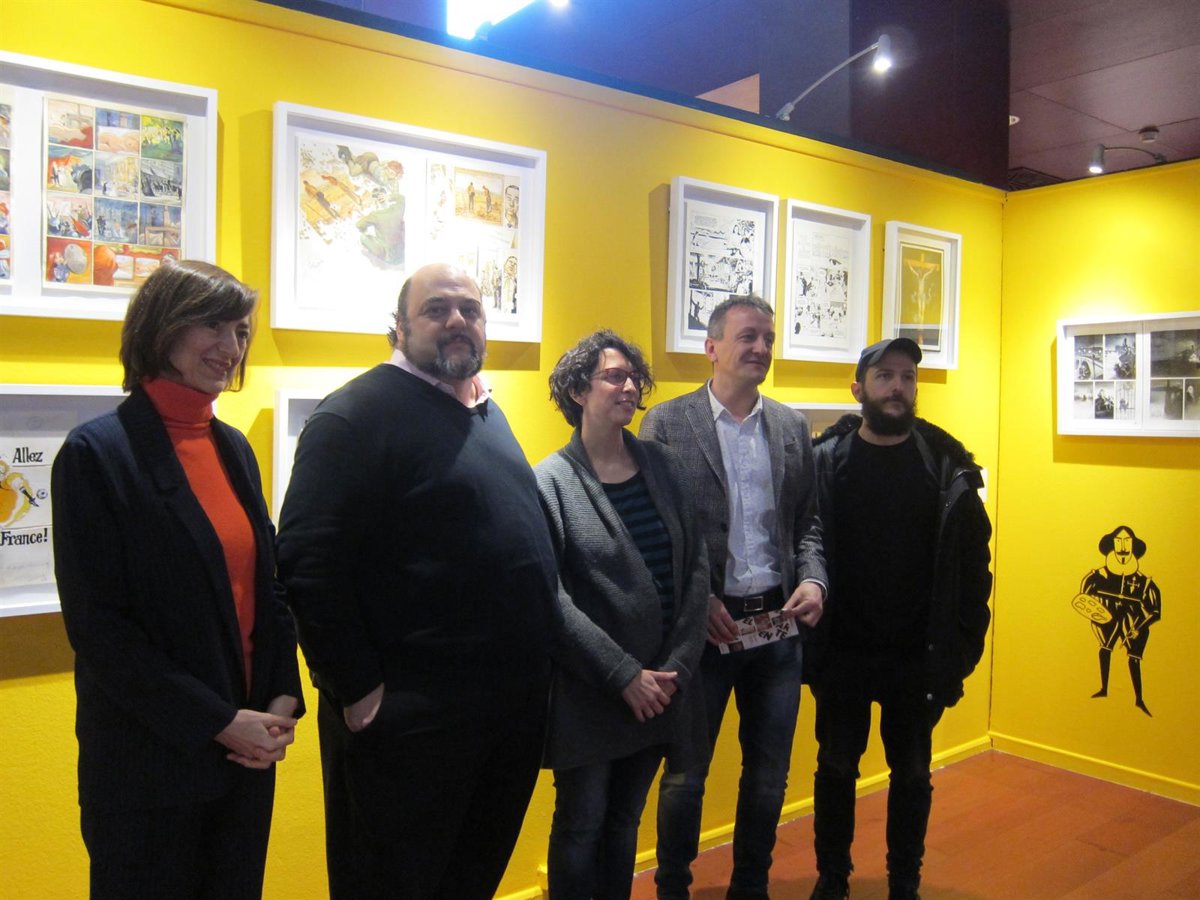 La muestra "El arte en el cómic" se ha presentado este martes por el consejero municipal de Economía y Cultura, Fernando Rivarés; la consejera municipal de Participación Ciudadana, Transparencia y Gobierno Abierto, Elena Giner; la representante de Fundación Telefónica, Laura Fernández; el comisario, Asier Mensuro; y el creador de cómic, Álvaro Ortiz.