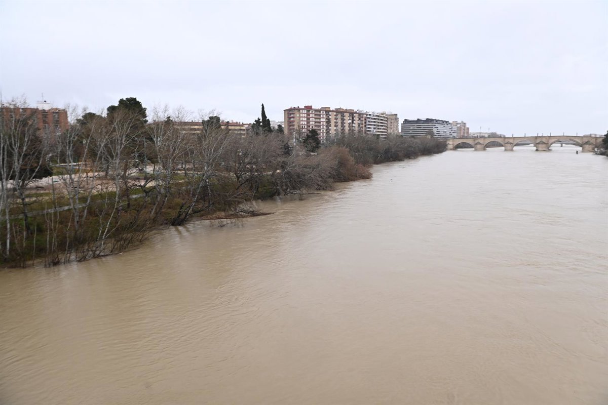 El río Ebro a su paso por Zaragoza ha rebasado ya la cota de los tres metros de altura y registra un caudal de 925 metros cúbicos por segundo según los datos de SAIH Ebro a las 14.00 horas de este sábado 14 de febrero. Unos niveles que seguirán en ascenso hasta el lunes, cuando se prevé llegue a la capital aragonesa la punta de la avenida generada por las lluvias concentradas en las últimas 24 horas en la zona norte de la cuenca.
