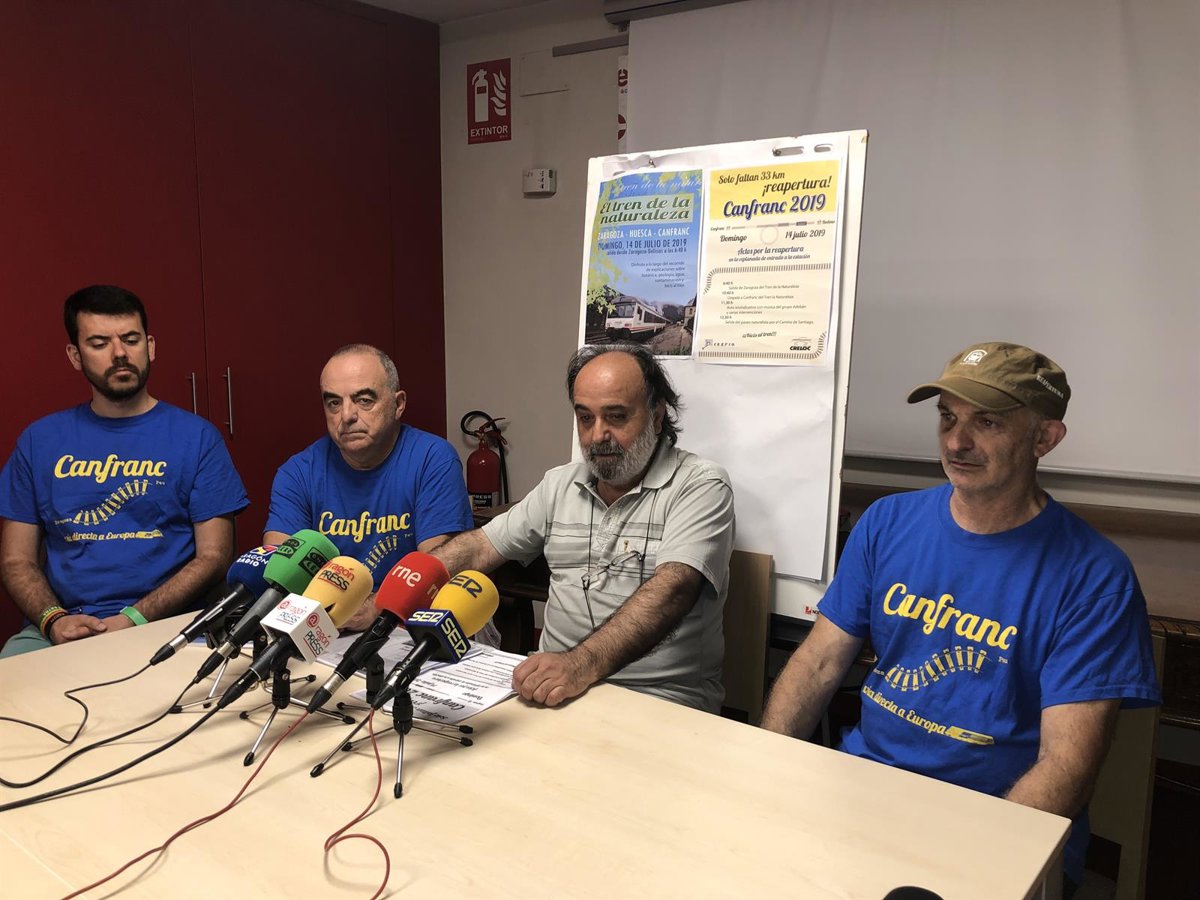 Crefco ha presentado este jueves la joranda reivindicativa en Canfranc que se celebrará el 14 de julio para reclamar de nuevo la reapertura de la línea internacional. - EUROPA PRESS