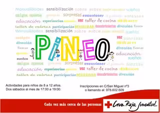 Cruz Roja Juventud Teruel empieza este sábado el proyecto PiNeo, dirigido a niños de 8 a 12 años. La iniciativa busca que los jóvenes, a través de ocio y tiempo libre, trabajen en los ejes de salud, igualdad, educación para la paz y respeto al medio ambiente.