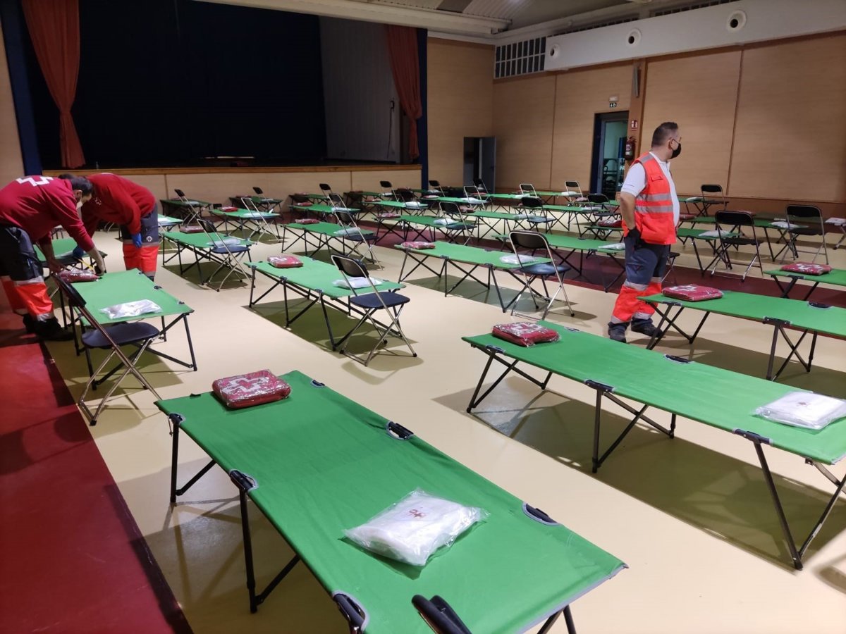 En cada uno de los albergues se están montando camas para 200 personas. El voluntariado del Equipo de Respuesta Inmediata en Emergencias (ERIE) de albergue y psicosocial está al cargo de este operativo en este momento, ha señalado Cruz Roja en una nota de prensa.