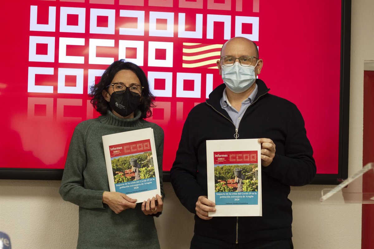 En una rueda de prensa, el secretario general de CCOO-Aragón, Manuel Pina, y la secretaria de Política y Diálogo Social del sindicato, Marta Arjol, han presentado las principales conclusiones de este análisis que pone de relevancia que el colectivo inmigrante sufre más los efectos del paro y la tasa de temporalidad.