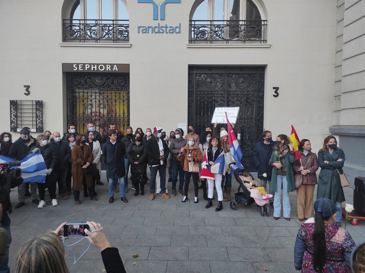 Este grupo de cubanos en la capital aragonesa ha querido concentrarse para mostrar su apoyo a todas las marchas convocadas este lunes, 15 de noviembre, para pedir un cambio político en el país. El movimiento Archipiélago, fundado por el dramaturgo Yunior García, había establecido inicialmente como fecha de la marcha el 20 de noviembre, pero unas maniobras militares anunciadas por el régimen cubano en los días previos le ha llevado a adelantar su convocatoria al día 15.