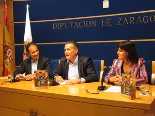 El diputado delegado de Bienestar Social de la Diputación Provincial de Zaragoza (DPZ), Máximo Ariza, el alcalde de Daroca, Miguel García, y la directora general de Turismo del Gobierno de Aragón, Elena Allué, han presentado en rueda de prensa la feria medieval que ha sido declarada este año Fiesta de Interés Turístico Regional por el Ejecutivo aragonés.