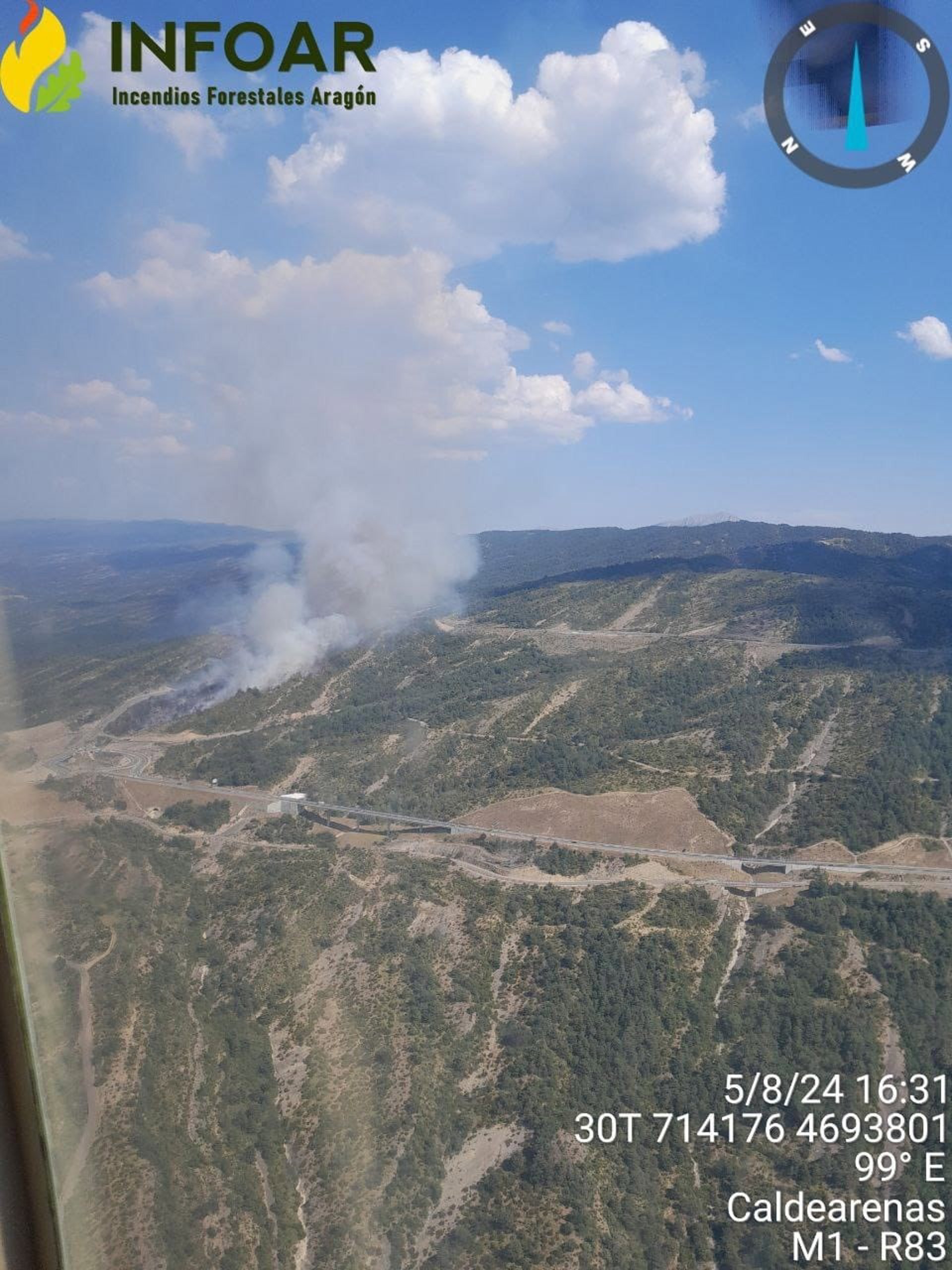 El Gobierno de Aragón ha informado de que se ha declarado este lunes, en torno a las 15.15 horas, un incendio forestal en el municipio oscense de Caldearenas (Huesca), cerca de la autovía A-23.