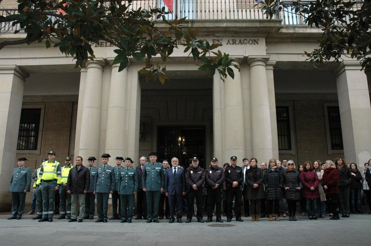 En concreto, han realizado una concentración y han guardado un minuto de respetuoso silencio, a las 12.00 horas, a las puertas de la sede de la Delegación, en la plaza del Pilar en Zaragoza.