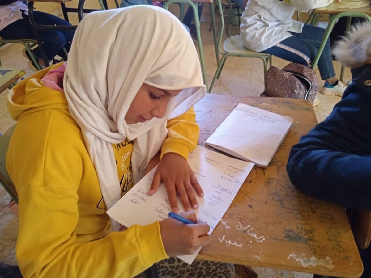 Archivo - Una niña refugiada saharaui firma una carta dirigida a Joe Biden - ESCRITORES POR EL SÁHARA BUBISHER - Archivo