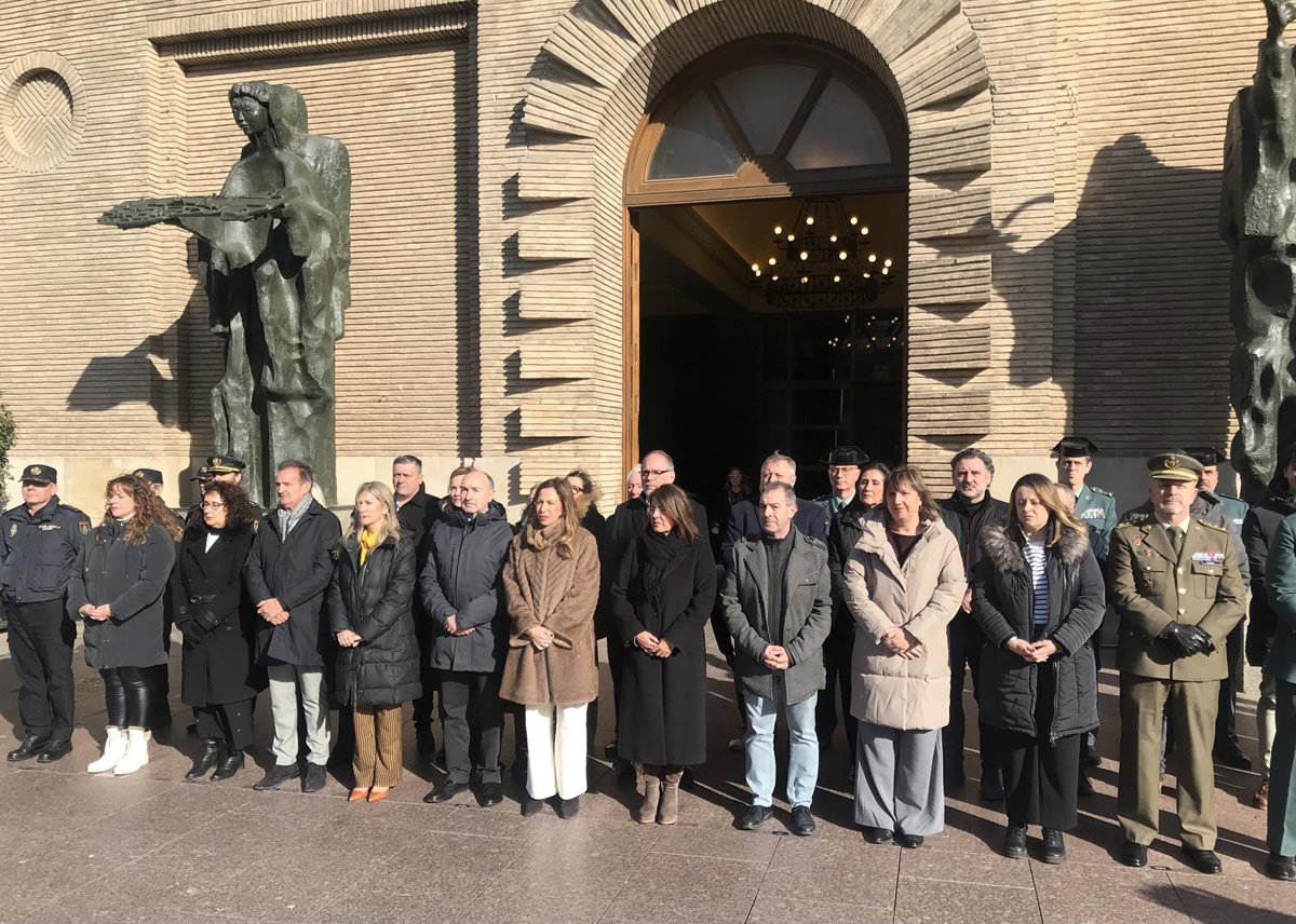 El delegado del Gobierno en Aragón, Fernando Beltrán, ha participado en el minuto de silencio convocado a iniciativa de la FEMP a las puertas del Ayuntamiento de Zaragoza y al que ha asistido la alcaldesa, Natalia Chueca; concejales de todos los grupos municipales y también se ha sumado la Justicia de Aragón, Concepción Gimeno; además de la vicepresidenta del Gobierno de Aragón y consejera de Economía y Justicia; Mar Vaquero; y la secretaria general del PSOE-Aragón, Pilar Alegría, quien también es la candidata socialista a las elecciones autonómicas del 8 de febrero.