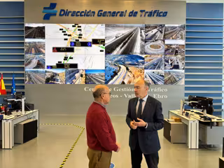 El jefe provincial de Tráfico, José Antonio Mérida, y el delegado del Gobierno en Aragón, Fernando Beltrán, este lunes en el centro de gestión del tráfico de Zaragoza. - DELEGACIÓN DEL GOBIERNO EN ARAGÓN