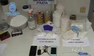 Una vez practicadas las detenciones, y con el preceptivo mandamiento de entrada y registro, se practicaron tres registros domiciliarios donde los agentes se incautaron de dos kilos y 300 gramos de cocaína, más de un kilo de sustancia de "corte" ya preparada para la mezcla, reactivos, productos químicos adulterantes, balanzas, prensas y dinero en efectivo.