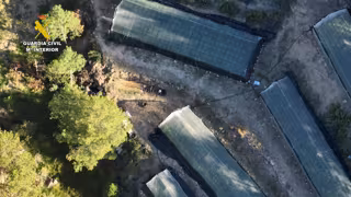 La Guardia Civil, en el marco de la operación 'Perrua Bufi', ha detenido a cuatro hombres tras ser sorprendidos cuando cuidaban una macro plantación de marihuana con hasta nueve invernaderos en mitad del monte, en el término municipal de Arcos de las Salinas, en Teruel.