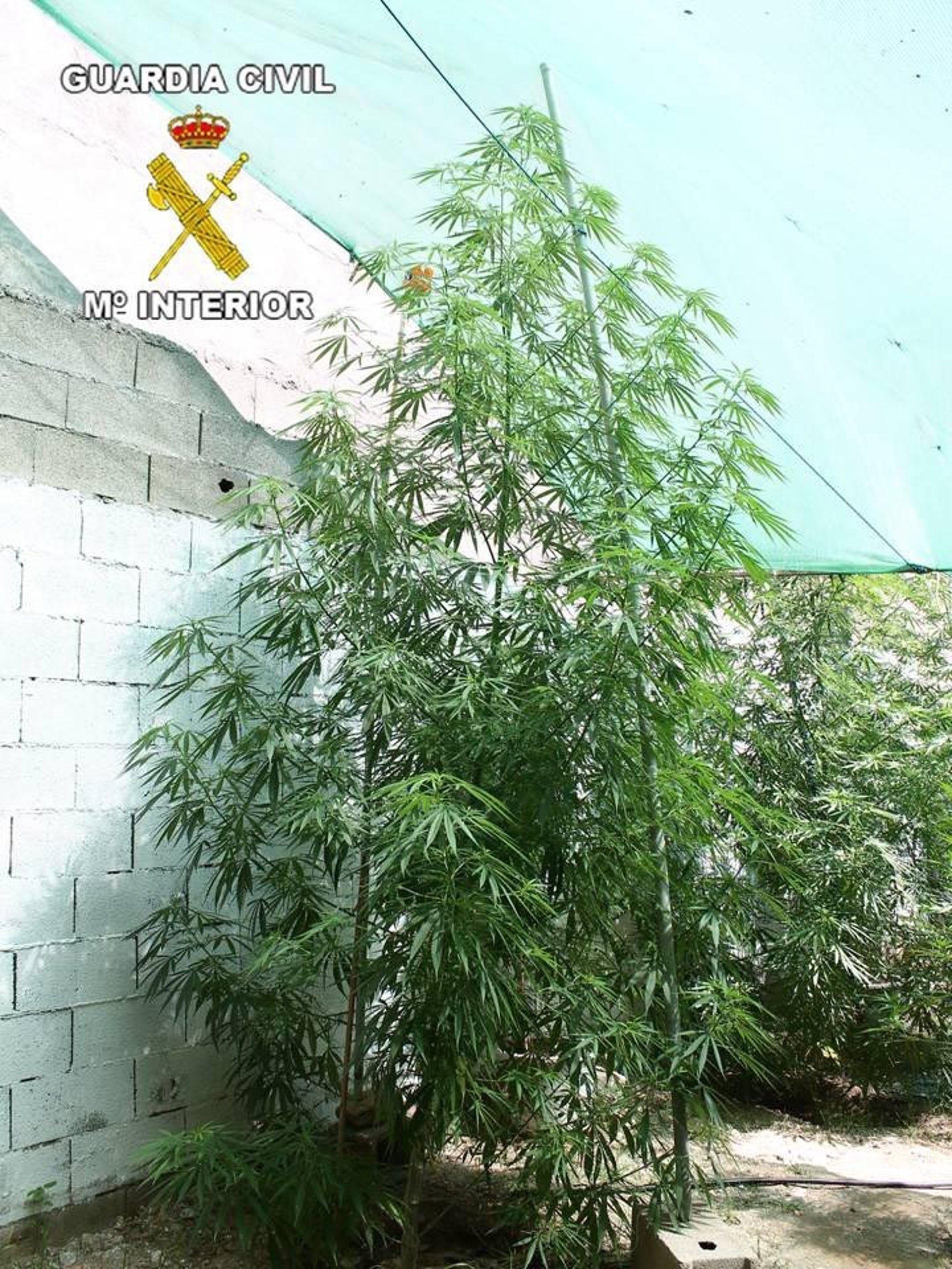 Desde el exterior, se pudo constatar la existencia de dos zonas de cubiertas con lonas en las que se percibía la existencia de un número indeterminado de plantas de cannabis, lo que hizo suponer a los agentes la posible existencia de una importante plantación en su interior.
