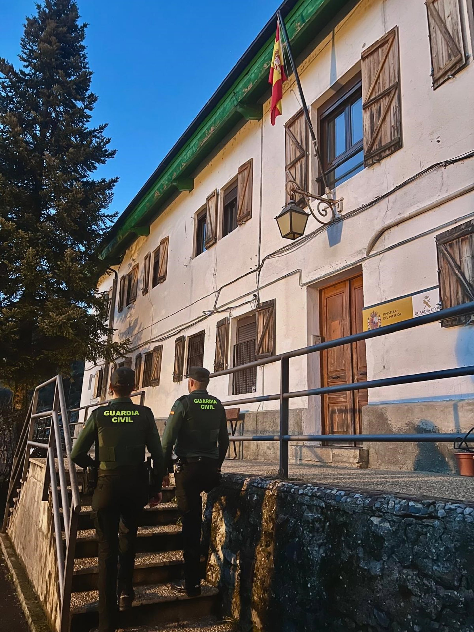 Dos agentes en el acceso al Puesto de la Guardia Civil de Seira (Huesca) - GUARDIA CIVIL