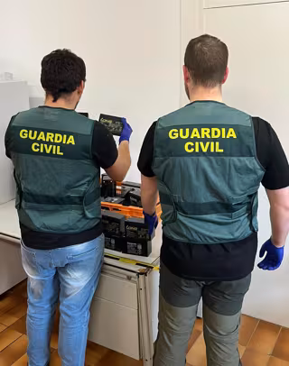 Dos agentes examinan el material incautado - GUARDIA CIVIL