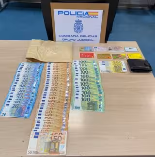 Sobre y dinero envíado por el detenido. - POLICÍA NACIONAL