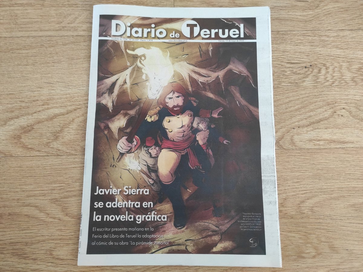 Diario de Teruel dedica su portada de este viernes al lanzamiento de la novela gráfica inspirada en la novela 'La pirámide inmortal' del escritor turolense Javier Sierra, Premio Planeta 2017. Se trata de una portada de coleccionista, singular en la prensa española, en