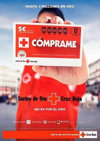 Este año el leit motiv empleado en la campaña para comercializar los boletos del Sorteo de Oro ha sido 'Cómprame'. Los propios boletos han servido de reclamo para pedir a los ciudadanos que ayuden a continuar con la labor de Cruz Roja.
