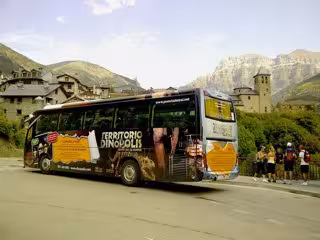 Dentro de la campaña promocional de verano de Territorio Dinópolis, este año por primera vez y hasta el 30 de septiembre, se ha tematizado un autobús de los que recorren el Parque Nacional de Ordesa.