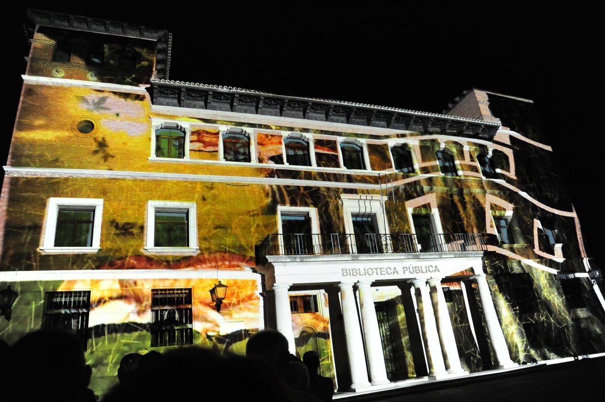 Numeroso público se ha congregado en el lugar para completar como sobre 684 metros cuadrados de superficie se proyectaban imágenes de luz generadas por ordenador en las fachadas de la plaza, el seminario, la torre mudéjar de San Martín y el edificio de la biblioteca mediante 40 cabezas de luz y acompañadas de 30.000 vatios de sonido.